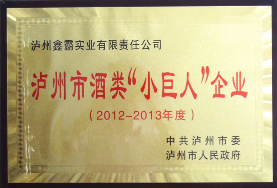 瀘州市酒類“小巨人”企業(yè) 版權(quán)所有:瀘州鑫霸實業(yè)股份有限公司